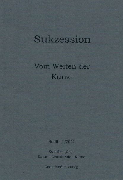 Mit den drei ersten Ausgaben Vom Weiten der Kunst (2022), Vom Schweigen der Natur (2021) und Vom Untergrund der Demokratie (2020) ist das geistige Fundament der Zeitschrift Sukzession gelegt.